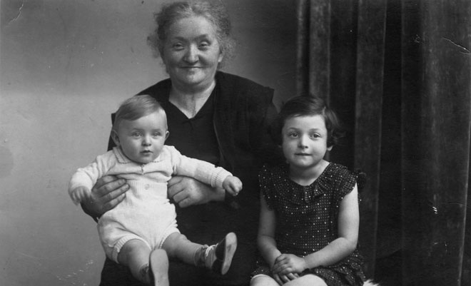 Die jüdische Textilhändlerin LINNA WOLF mit ihren Enkelkindern ALFRED und THEA KUHN