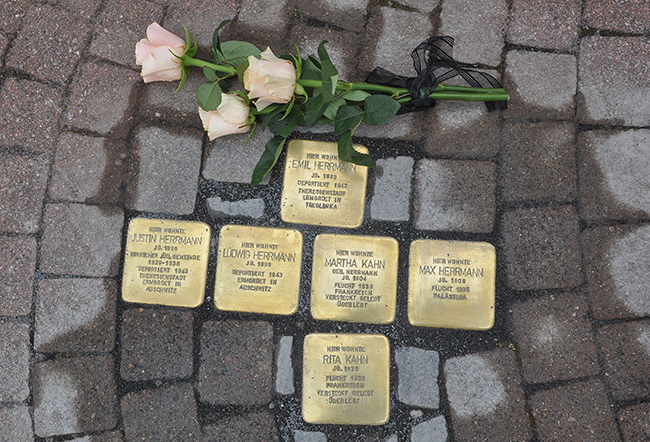 Stolpersteine für den Händler Emil Herrmann, seine vier Kinder und seine Enkeltochter