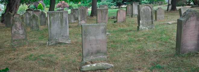 Es verblieben 90 Grabmale aus dem 19. Jahrhundert. Die Inschriften auf den alten Sandsteinen sind nur noch teilweise zu lesen.